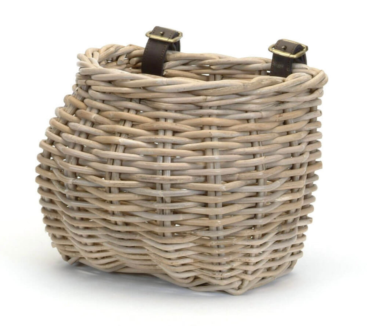 This cute bicycle basket can be hung with the leather straps attached or not.