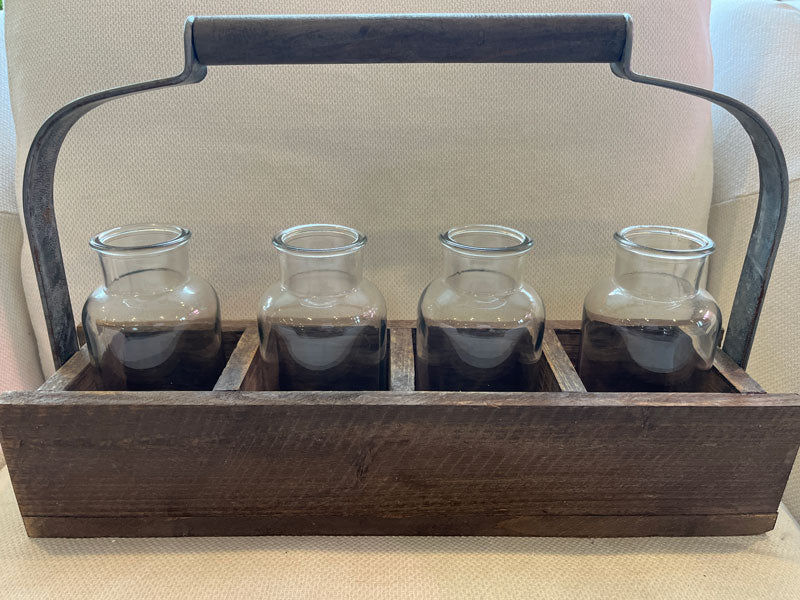 Stunning Centrepiece Handle Crate with 4 glass bottles.