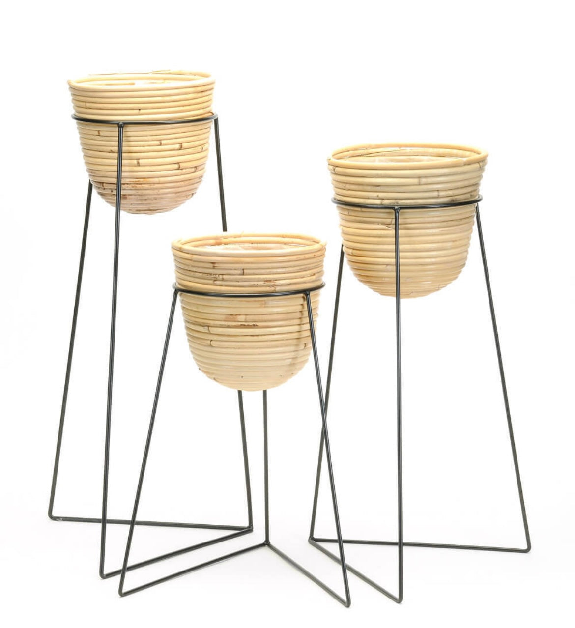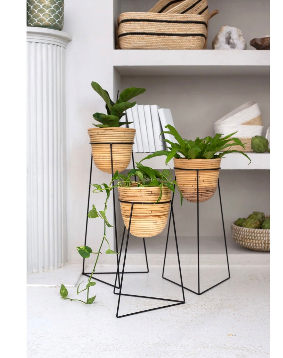 Rattan Plant Baskets in Black Stand