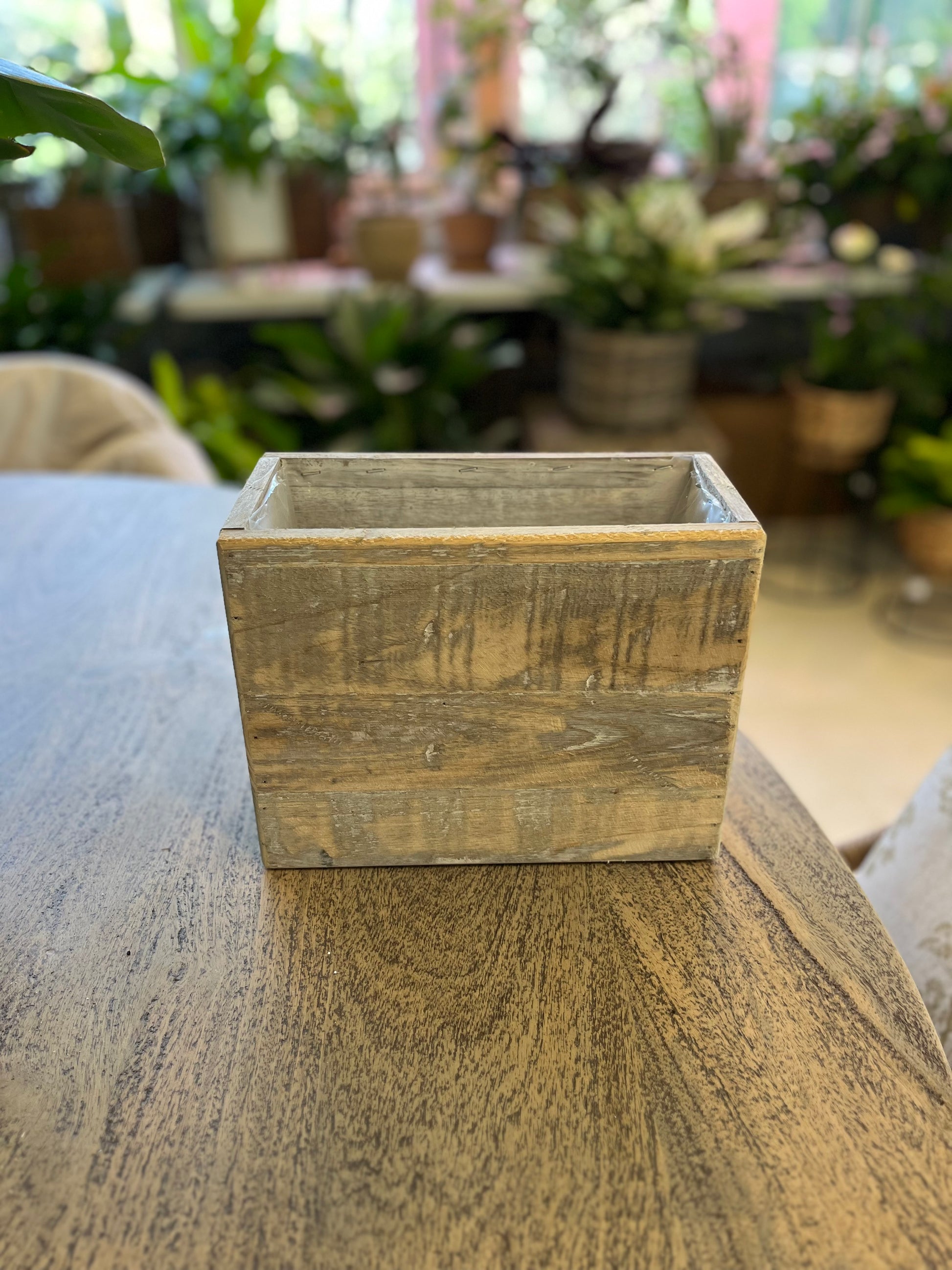 Rectangle Lined Wooden Pot Whitewashed