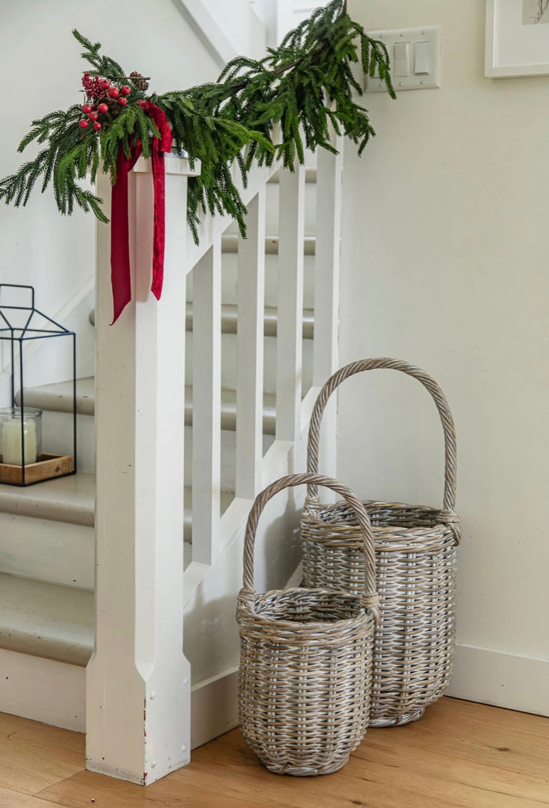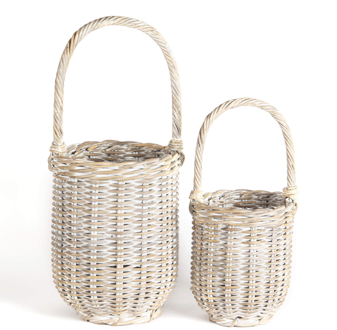 Tall Whitewash Rattan Baskets With Overhandle