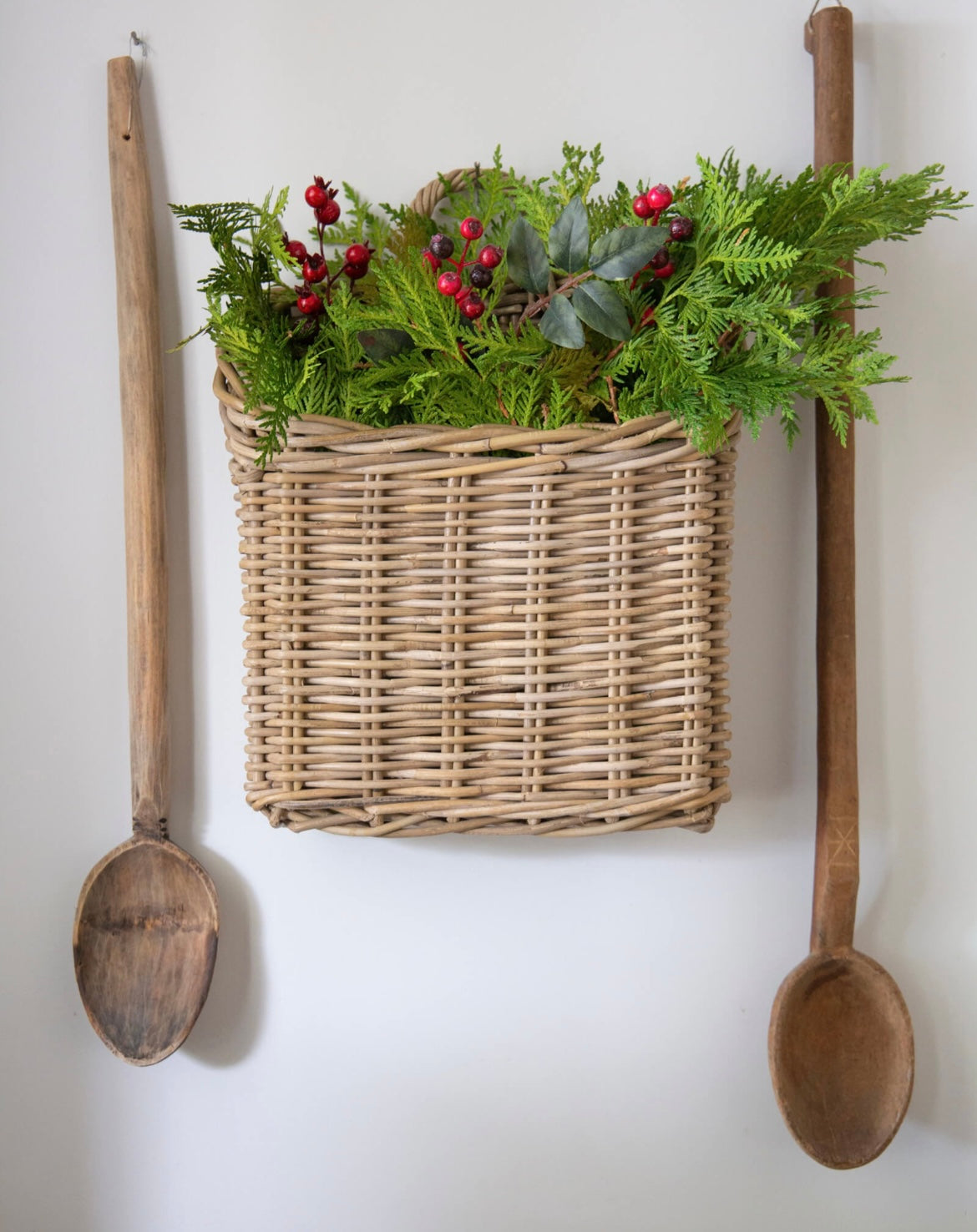 This basket provides a very classic look on your front door or wall that can easily be filled with seasonal flowers and or greenery.